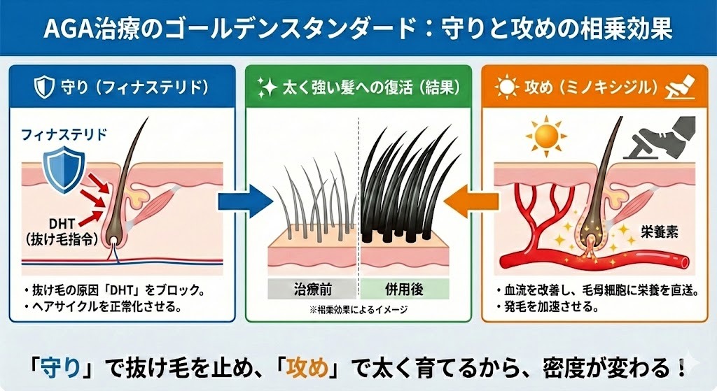 AGA治療の黄金律:フィナステリドとミノキシジル併用のメカニズム